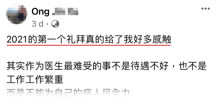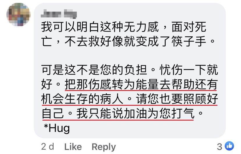 近日两则来自大马医生的面子书帖文在网上流传,面对现在的疫情严峻,他们都说道目前的状况几乎已经达到极限,加护病房每天都必须面对是否放弃抢救的抉择,心灵的煎熬和痛苦无法用言语形容!