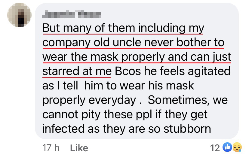 ▼「但我身边还是有很多长辈不愿意好好戴口罩,每天当我叫他把口罩戴好时,他都会很不开心。」