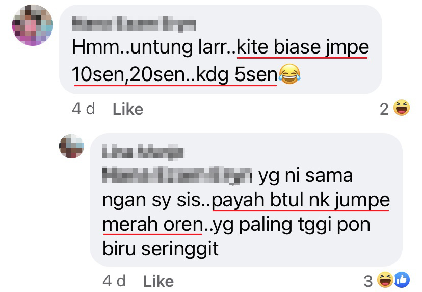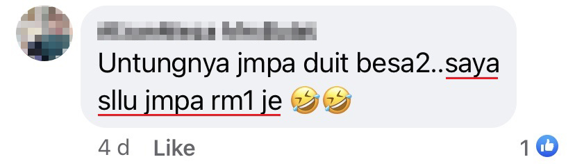 ▼ 网友们表示羡慕:「我顶多只捡到零钱或是RM1而已!」