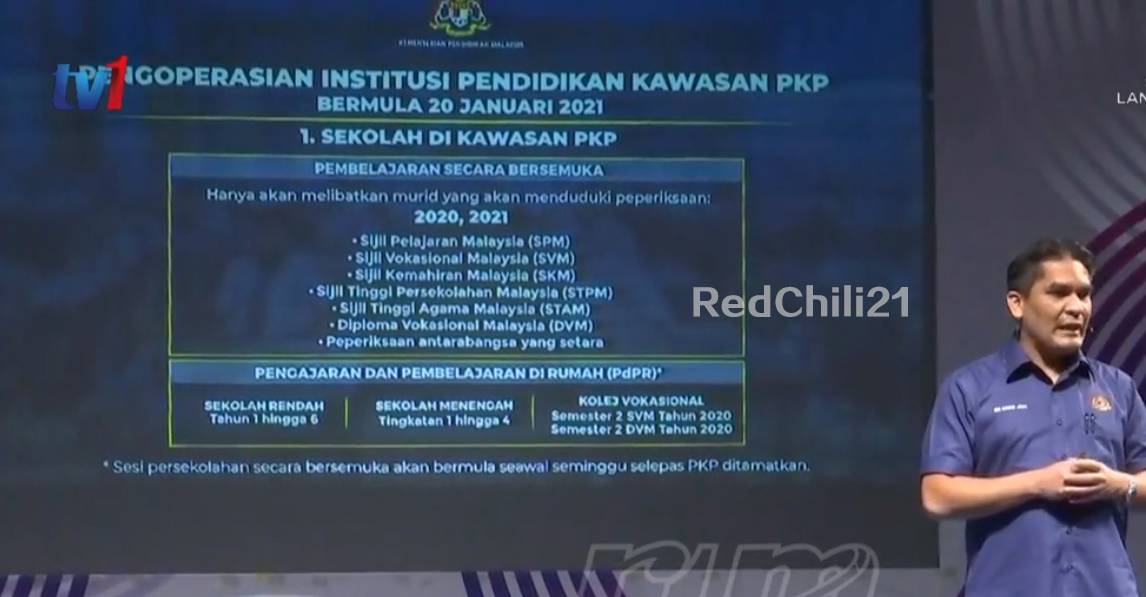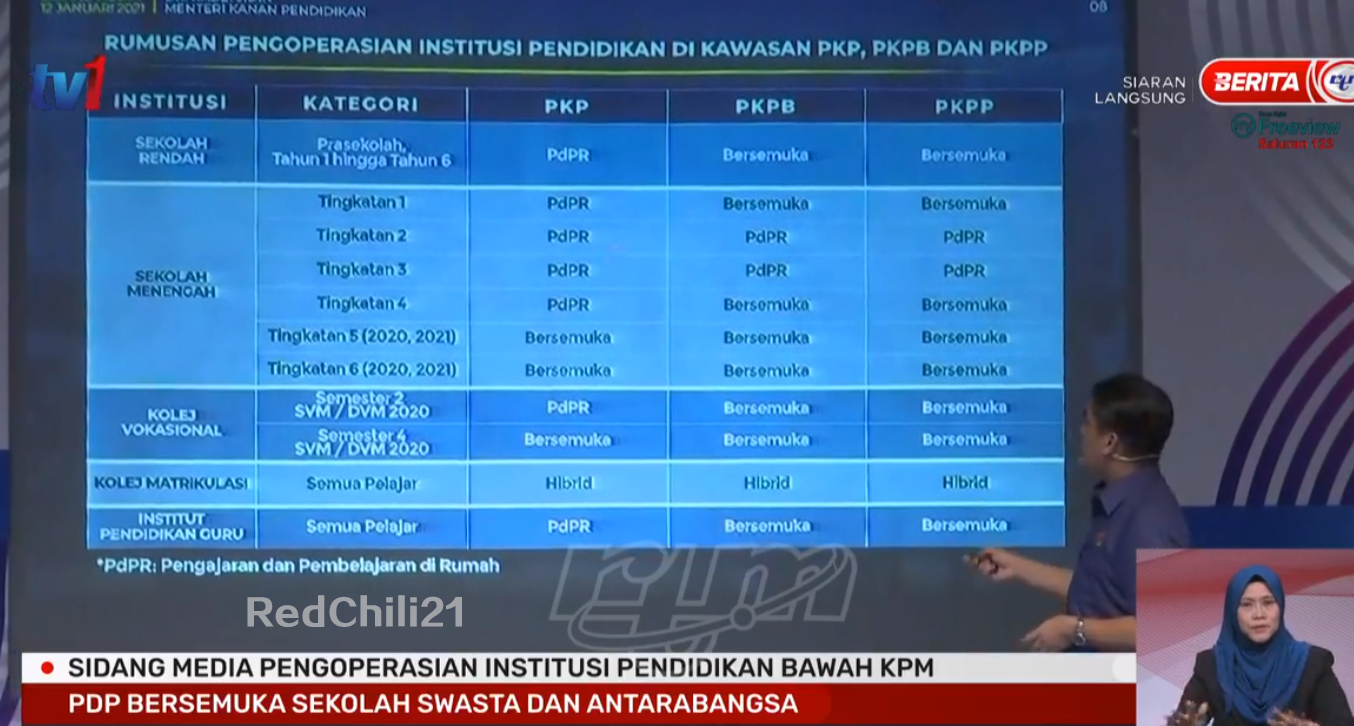 所以教育部长于今日(1月12日)公布全国学校运作详情:
