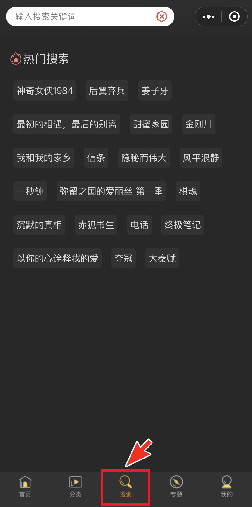 ▼ 你也可以点击下方的第三个选项【搜索】,输入剧名在【搜索关键词】以直接搜寻。