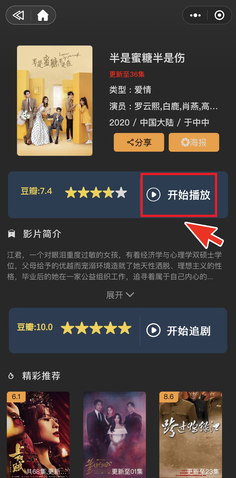 ▼ Step 5:选择你要看的电视剧/电影,接着点击【开始播放】。