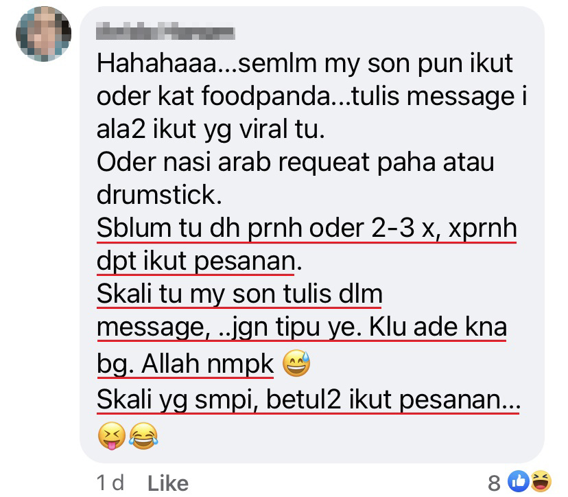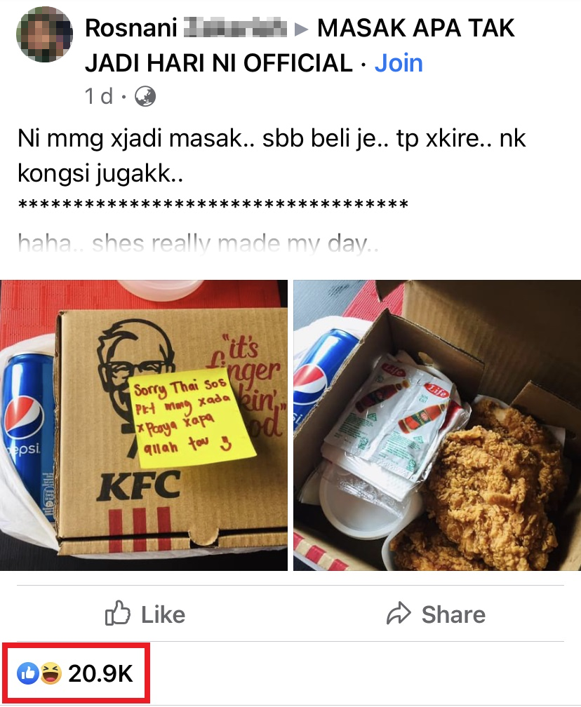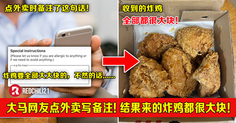 网络疯传超过45K人点赞!大马网友点外卖写备注!结果来的炸鸡都很大块!
