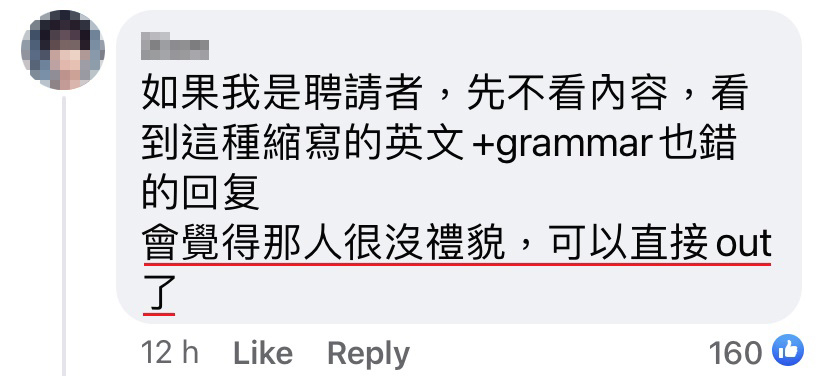 ▼ 以上的对话,网友们首先注意到了求职者的英文语病。