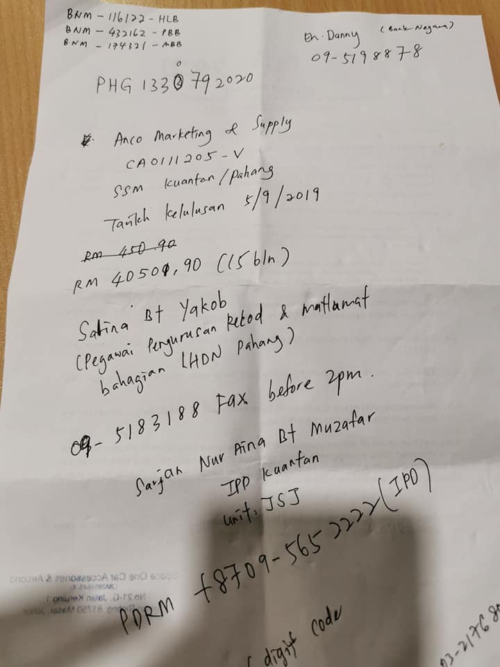 她说可以通过电话帮我转接去IPD Kuantan,先做个电话记录然后叫警察把report传真到LHDN。我接通了,是个自称Sarjan Nur Aina的人给我录口供,她问的非常专业和仔细!还骂我懂不懂IC是要画palang才可以拿去申请东西的:「你没有看新闻,现在很多被盗用IC的吗?!」