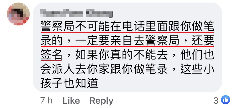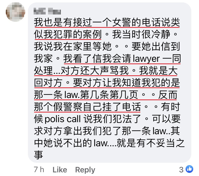 电话真的又转回去了那很厉害演的Sarjan!我突然松了一口气,觉得应该没被骗。因为我真的没有怀疑过那不是警局!她说要把report寄来我家,跟我拿地址资料。过后要WhatsApp我核对报告写的有错误吗,她就突然断线不见了!