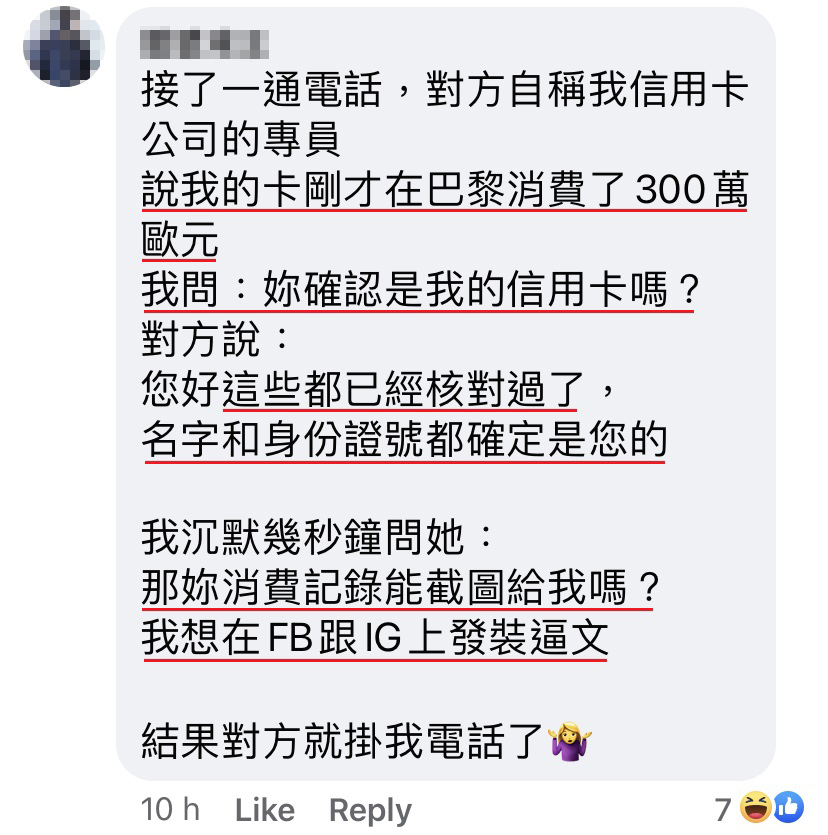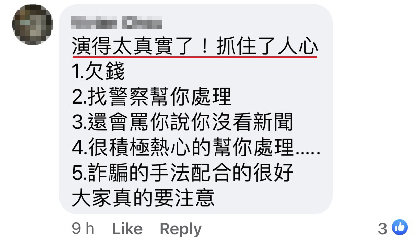 填完马上收到信息:我的钱被转走了… 那人还在电话里说:「你不要担心,这是transaction错误,我们会马上帮你处理。」他交代我这1小时不能动户口,会影响他们处理。