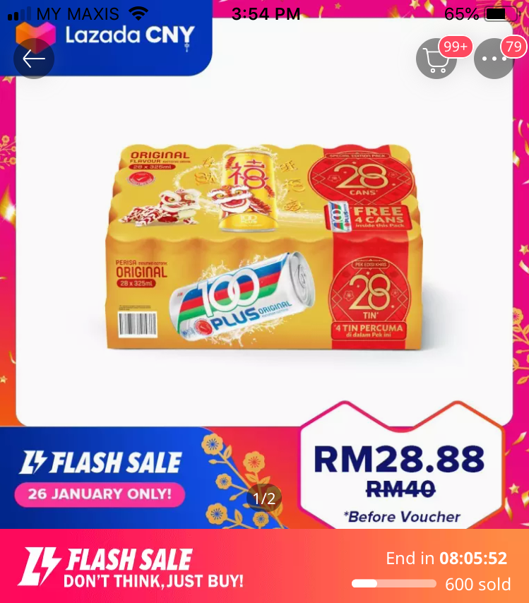 ▼28罐装100 Plus Flash Sales- RM28.88!