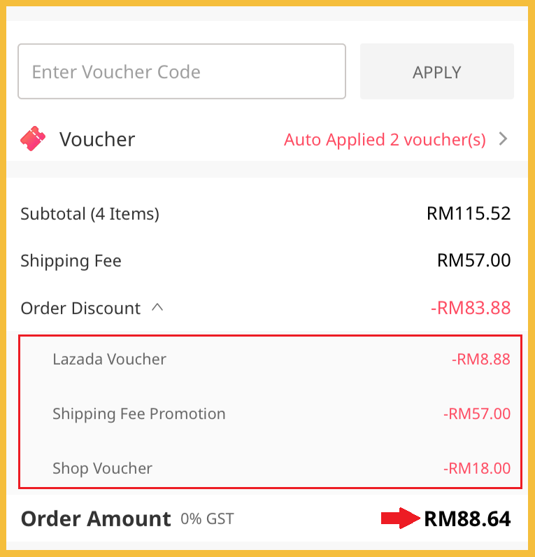 ❸ 拿完店家的折扣券再拿Lazada 送出的RM8.88 折扣券!真的是不拿白不拿啊!