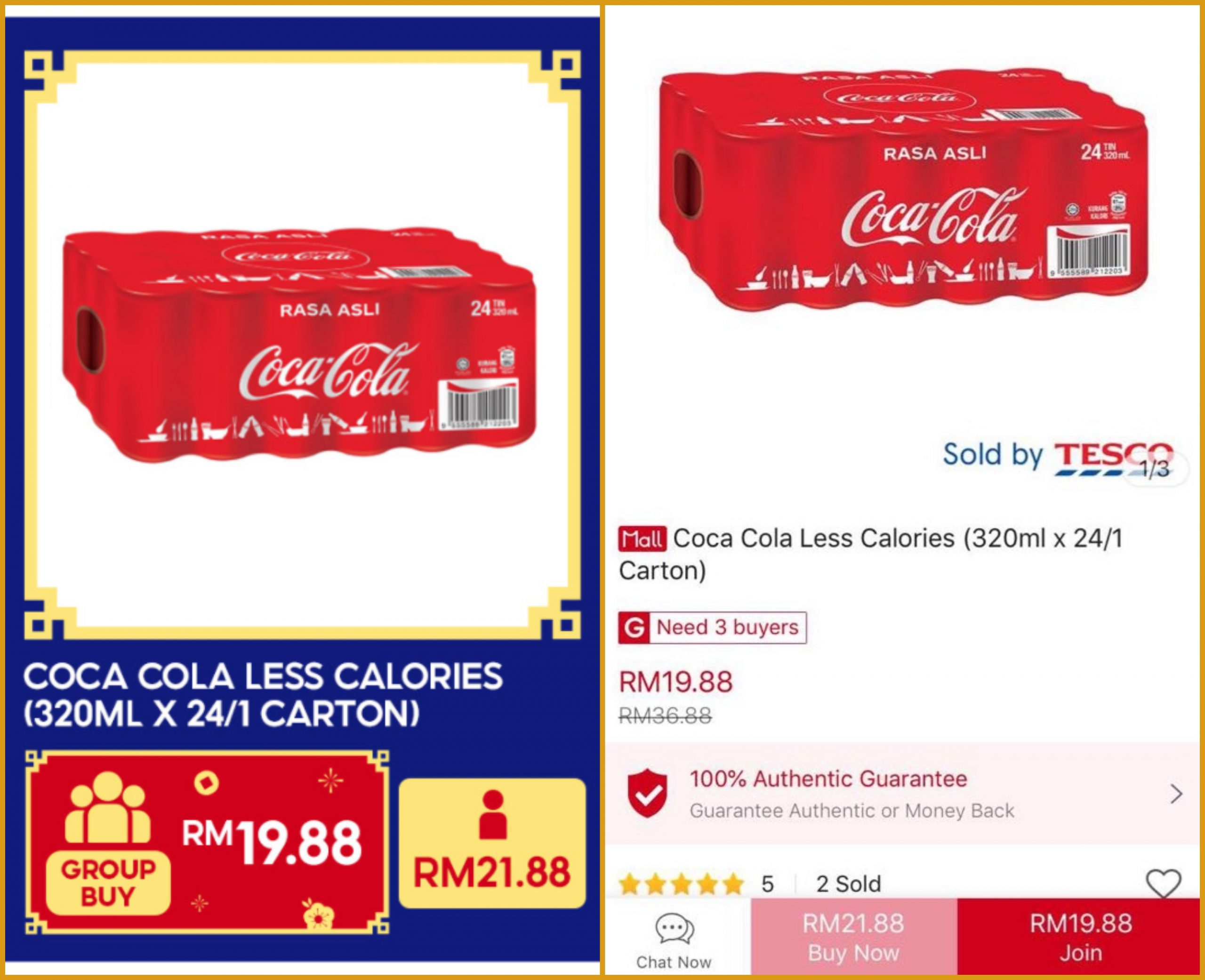 ※ 一箱CoCa-Cola(24罐x 320ml)只需RM19.88!且还要凑齐3人成一个组才能成功买到哦!