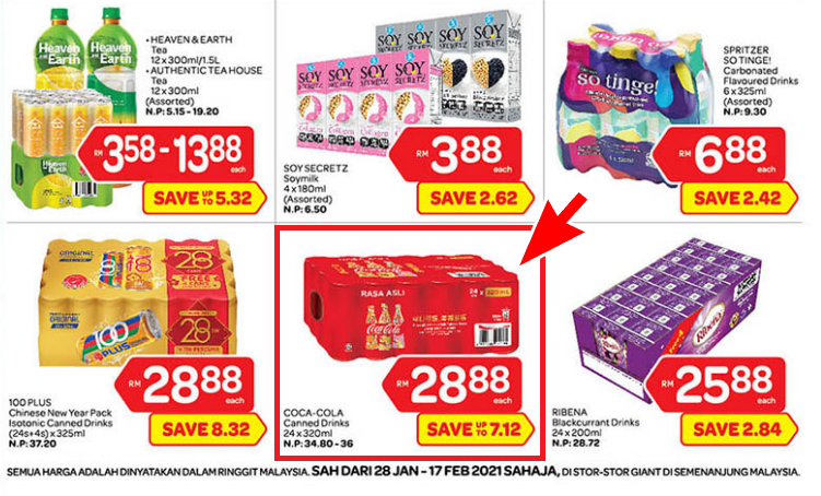 ※ 一箱CoCa-Cola(24罐x 320ml)只需RM19.88,还送出一罐(1Litre)Coca-Cola 汽水!是不是觉得这个比较划算呢?!