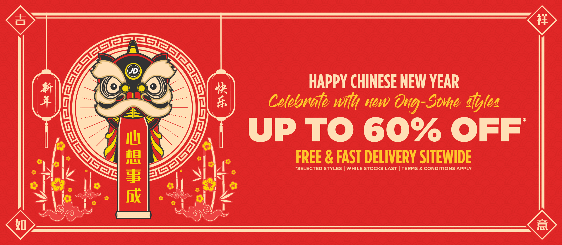 为了配合农历新年的到来,大马JD Sports 即日起推出新春大促销,折扣高达72%!不管是男装或女装运动鞋及运动服等都享有折扣优惠!