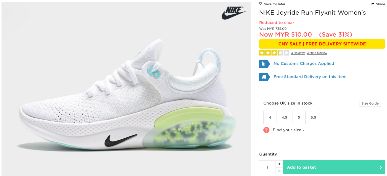 ▼ NIKE Joyride Run Flyknit Women’s【折扣31%】- 只需RM510(原价 RM735)
