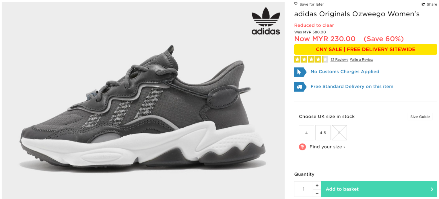 ▼ adidas Originals Ozweego Women’s【折扣60%】- 只需RM230(原价 RM580)