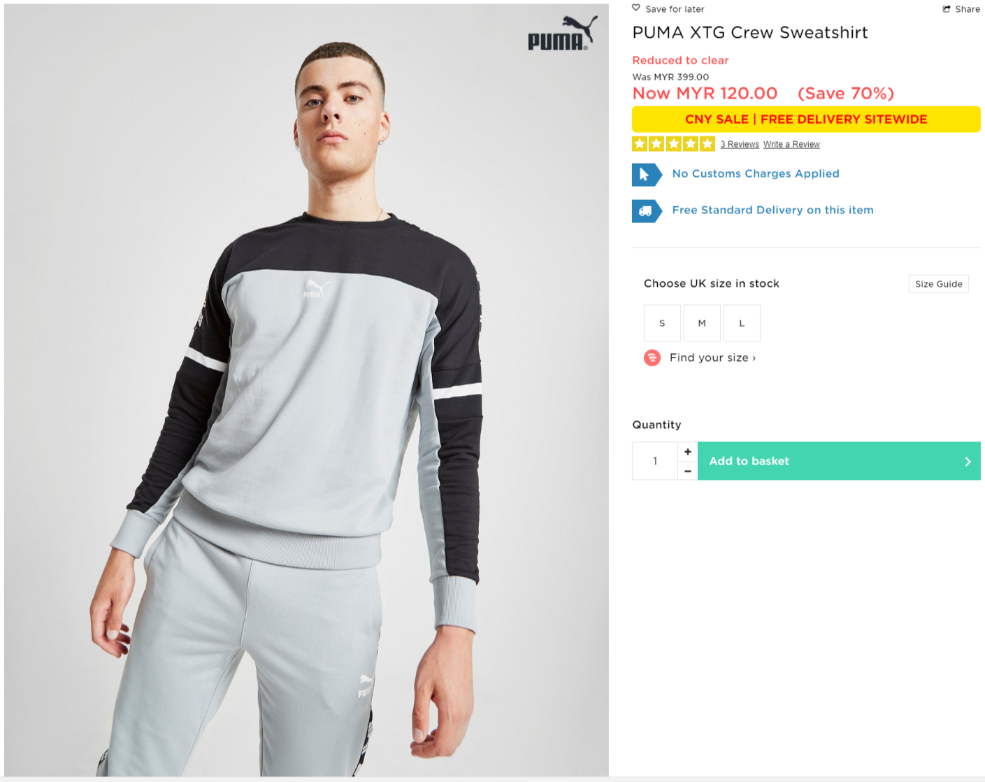 ▼ PUMA XTG Crew Sweatshirt【折扣70%】- 只需RM120(原价 RM399)