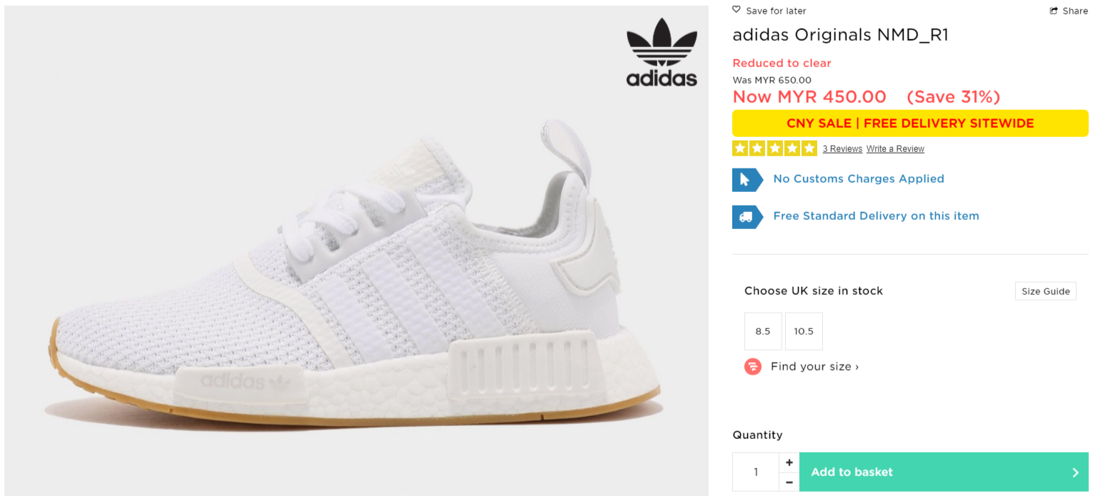 ▼ adidas Originals NMD_R1【折扣31%】- 只需RM450(原价 RM650)