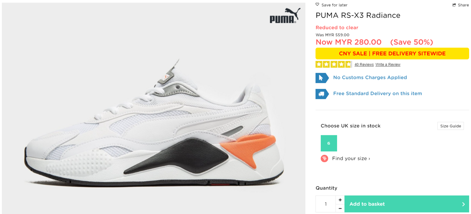 ▼ PUMA RS-X3 Radiance【折扣50%】- 只需RM280(原价 RM559)