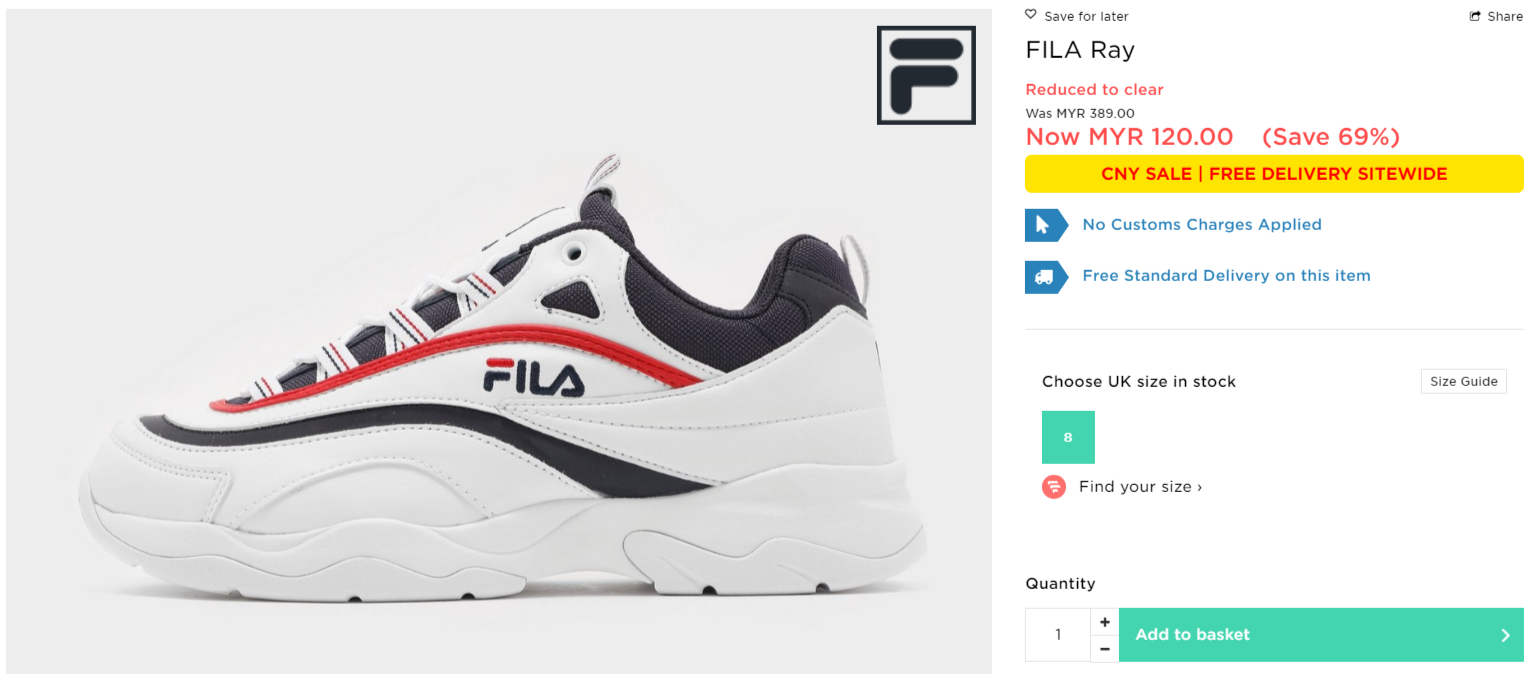 ▼ FILA Ray Tracer【折扣71%】- 只需RM130(原价 RM449)