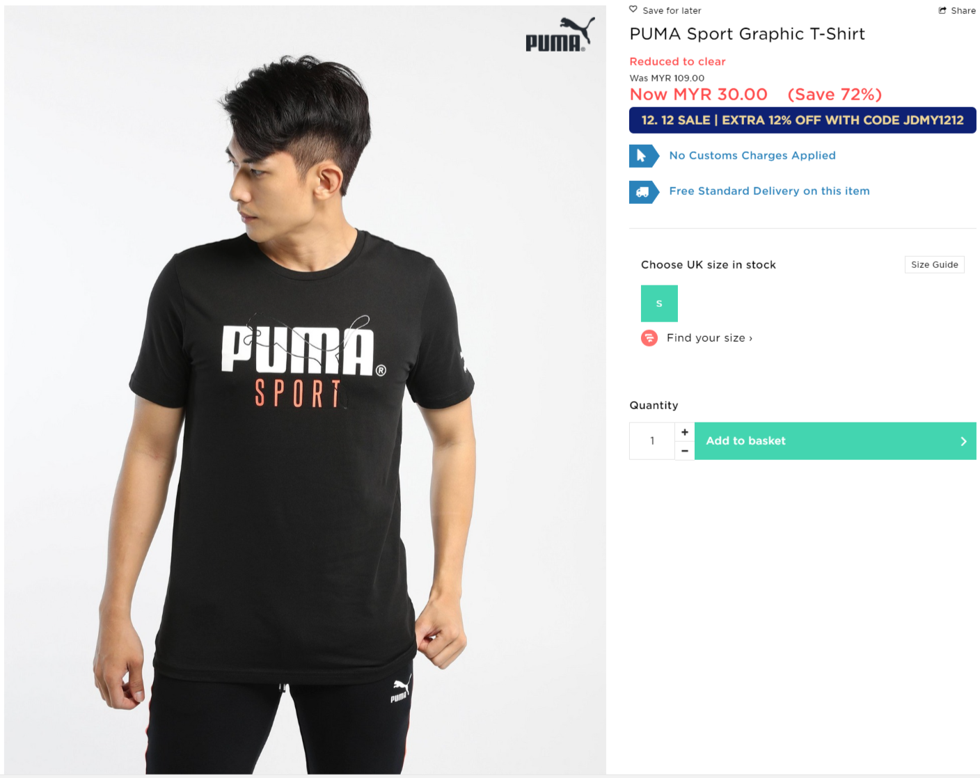 ▼ PUMA Sport Graphic T-Shirt 【折扣72%】- 只需RM30(原价 RM109)