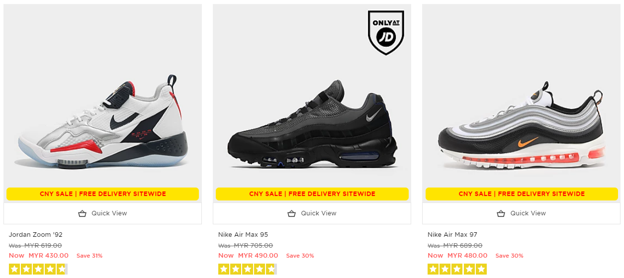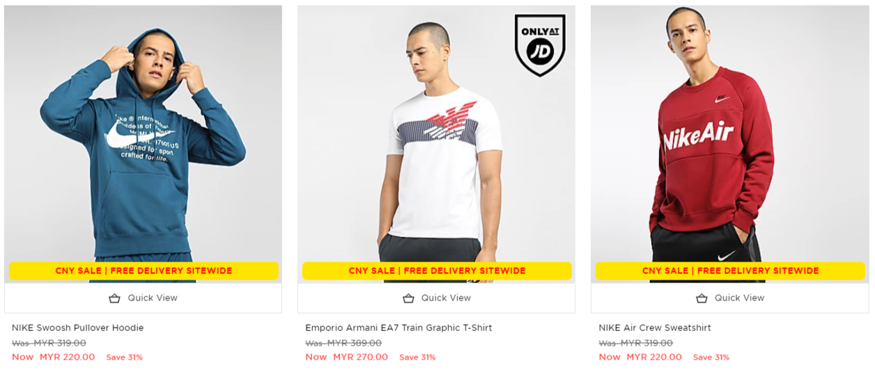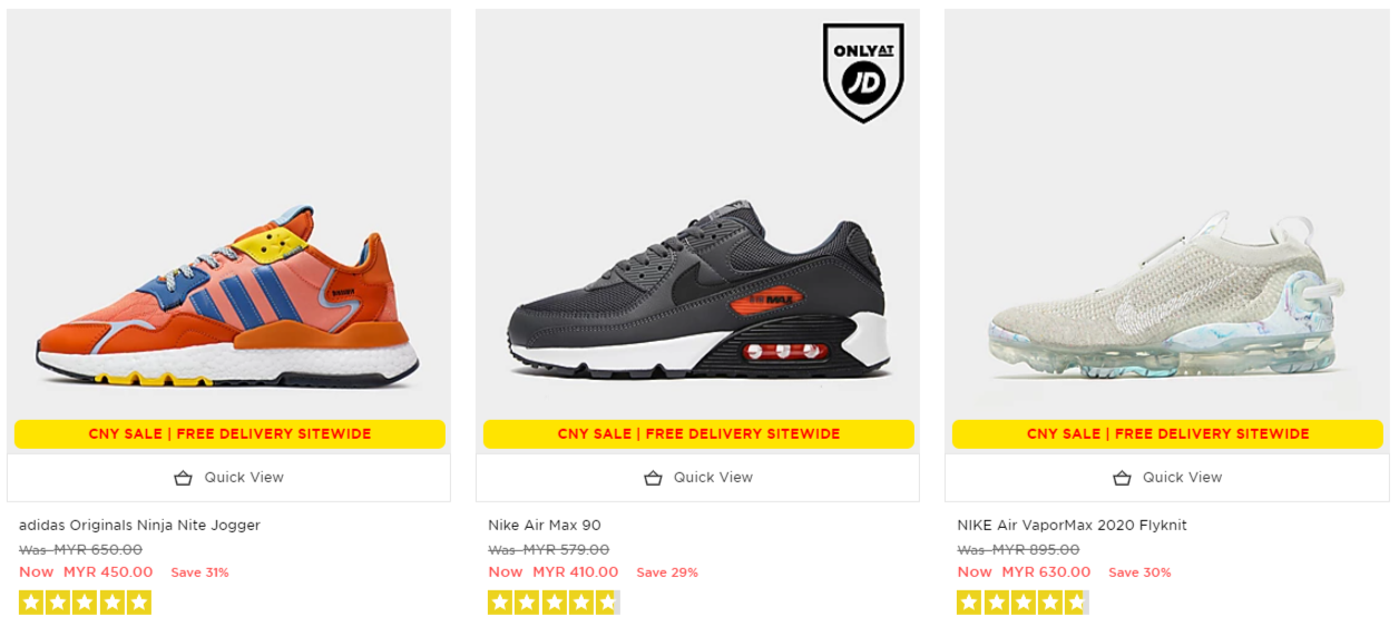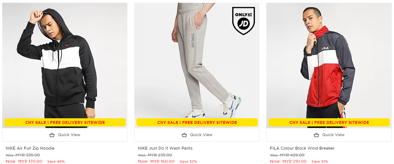 只要你在JD Sports 官网购买指定新春促销商品,可享有折扣高达72%优惠!同时还Free Delivery 给你哦!