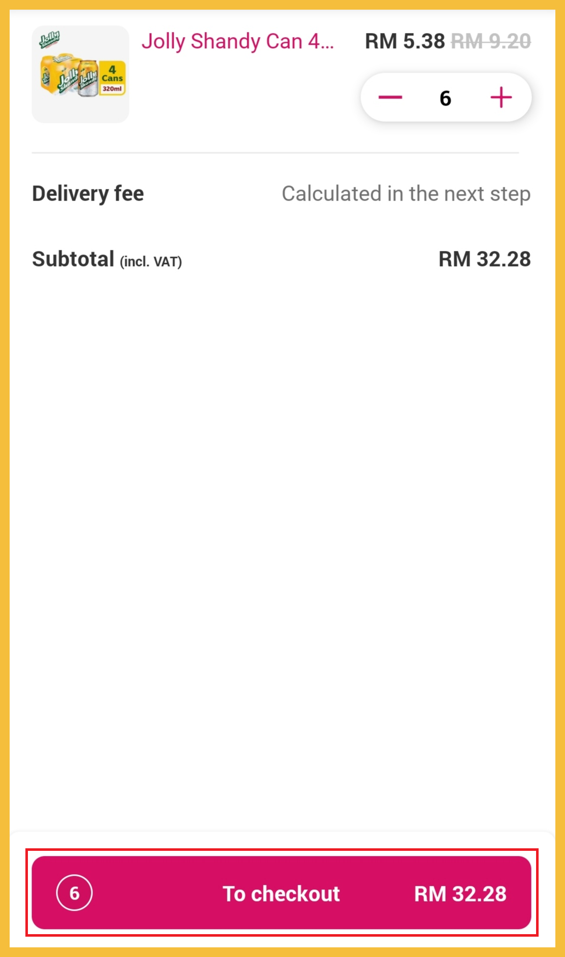 ※ 注意:最低消费RM30,才能获得折扣!所以小编购买6套Jolly Shandy Can(4 x 320ml),共有24罐!