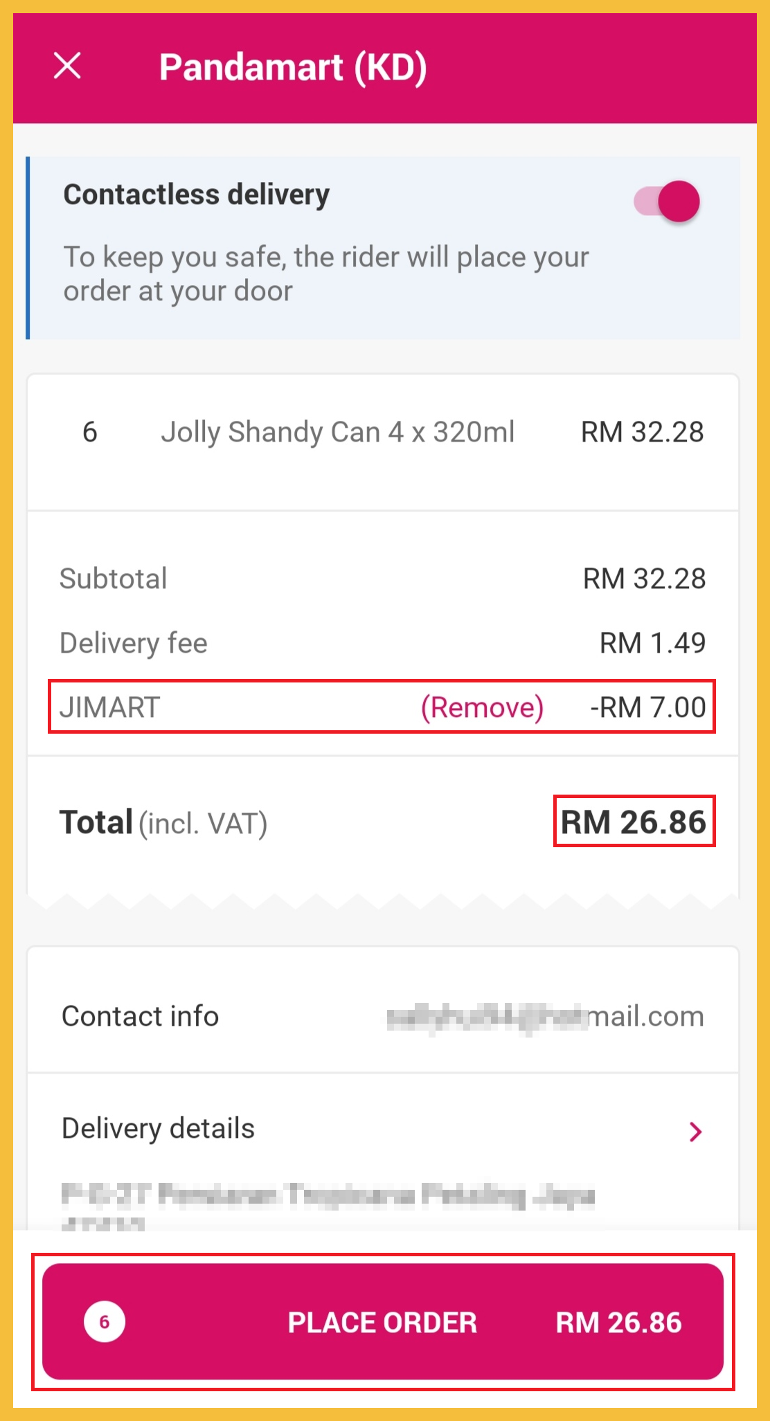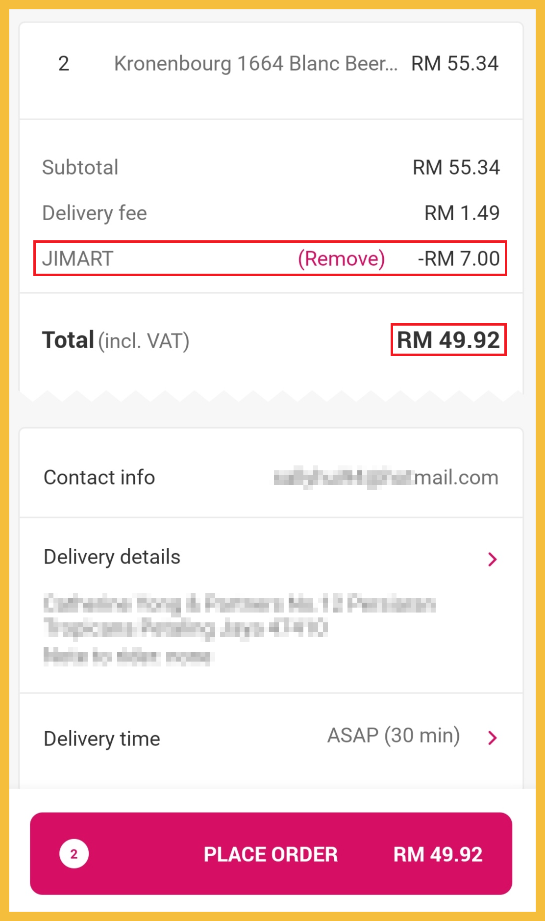 步骤 5:输入 【JIMART】这个优惠码可获得RM7折扣