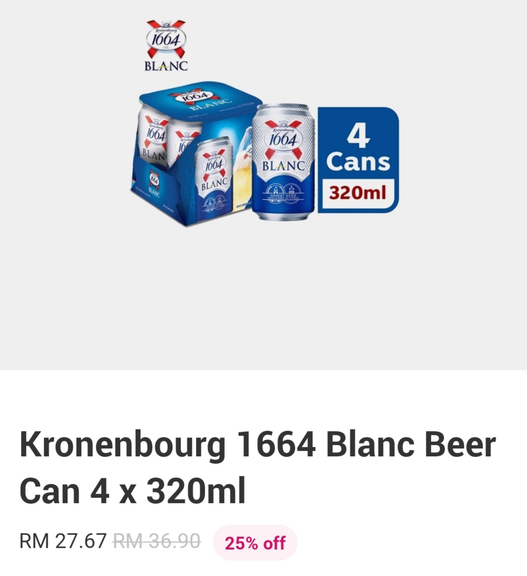 又或者购买Kronenbourg 1664 Blanc Beer,一套有4罐售价RM27.67!