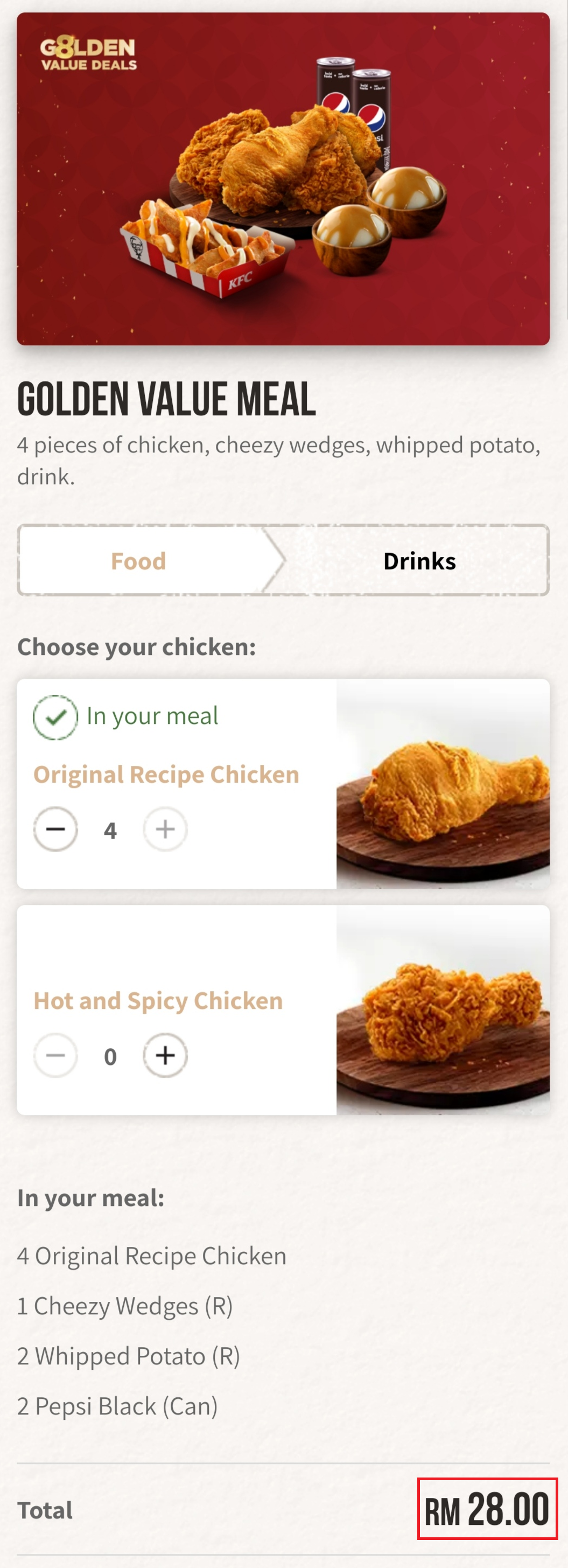 ▼ 输入优惠码【GOLDEN28】,就可购买到该优惠炸鸡配套