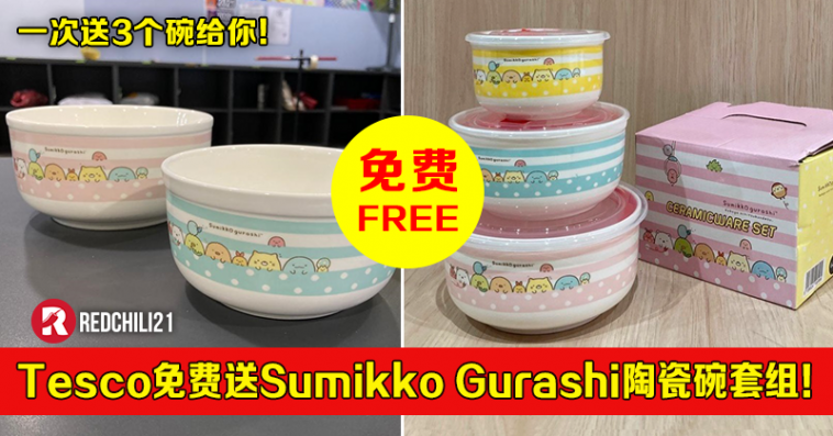 倘若还没收集到的朋友或错过上次赠品的朋友,别伤心!这次有好消息要告诉你~大马Tesco 即日起送出这套Sumikko Gurashi 陶瓷碗套组了!