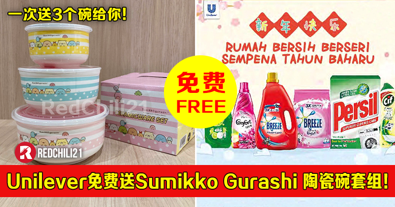 促销活动:购买Unilever 旗下产品,免费送出一套Sumikko Gurashi 陶瓷碗套组