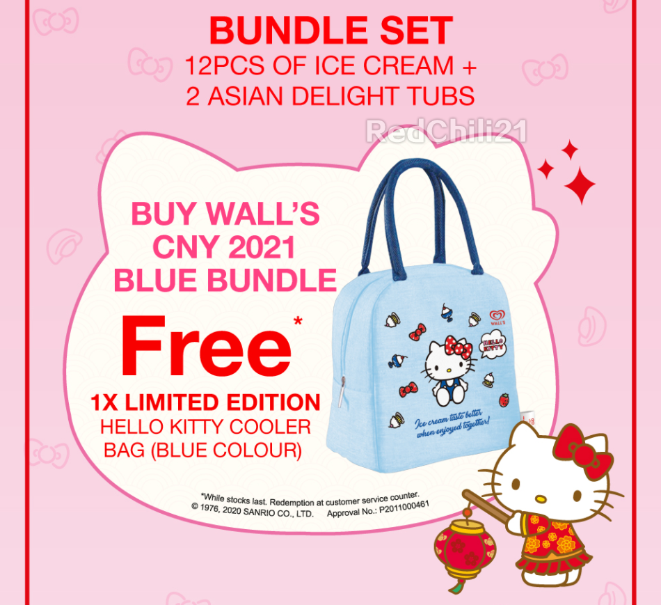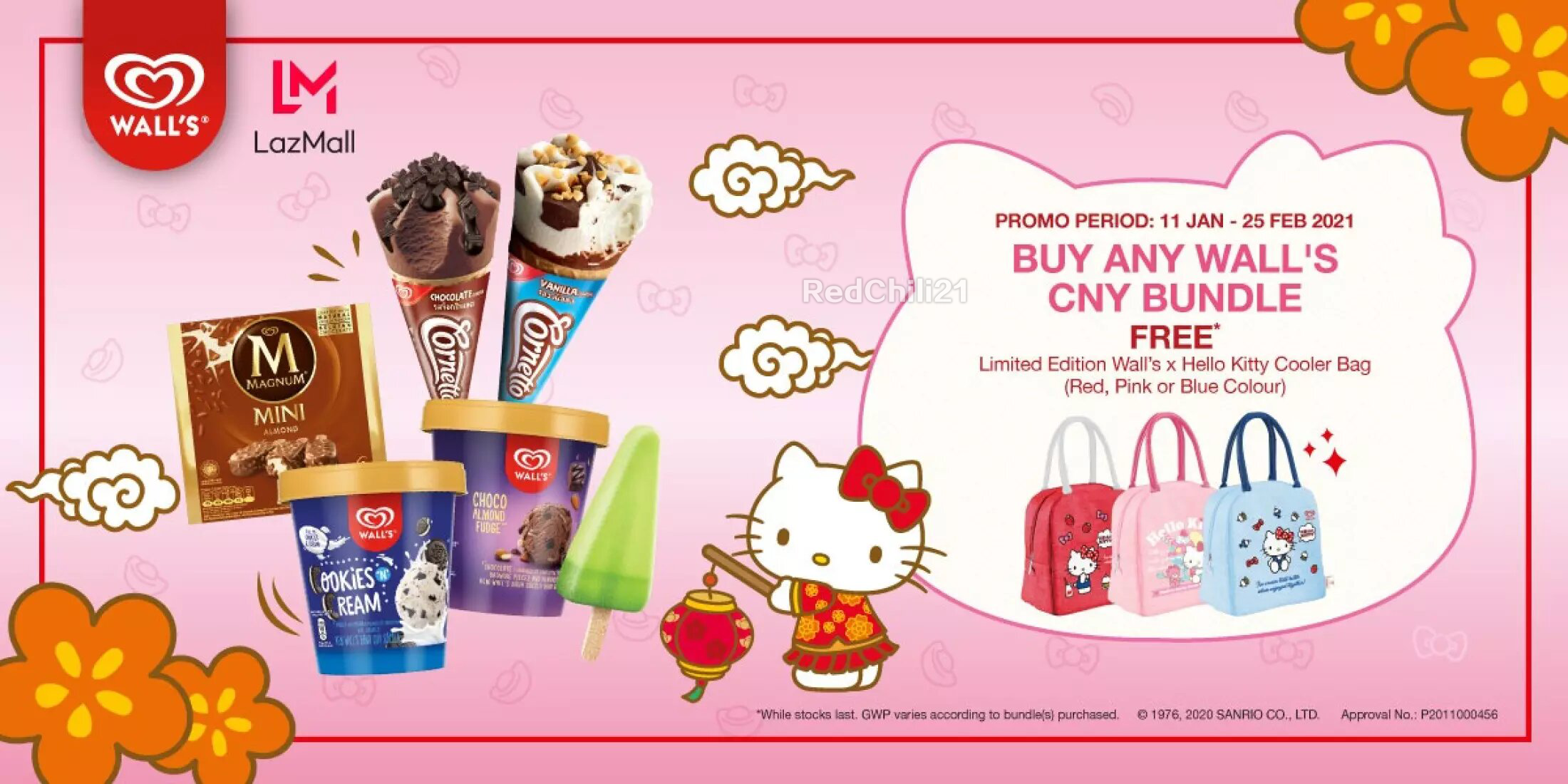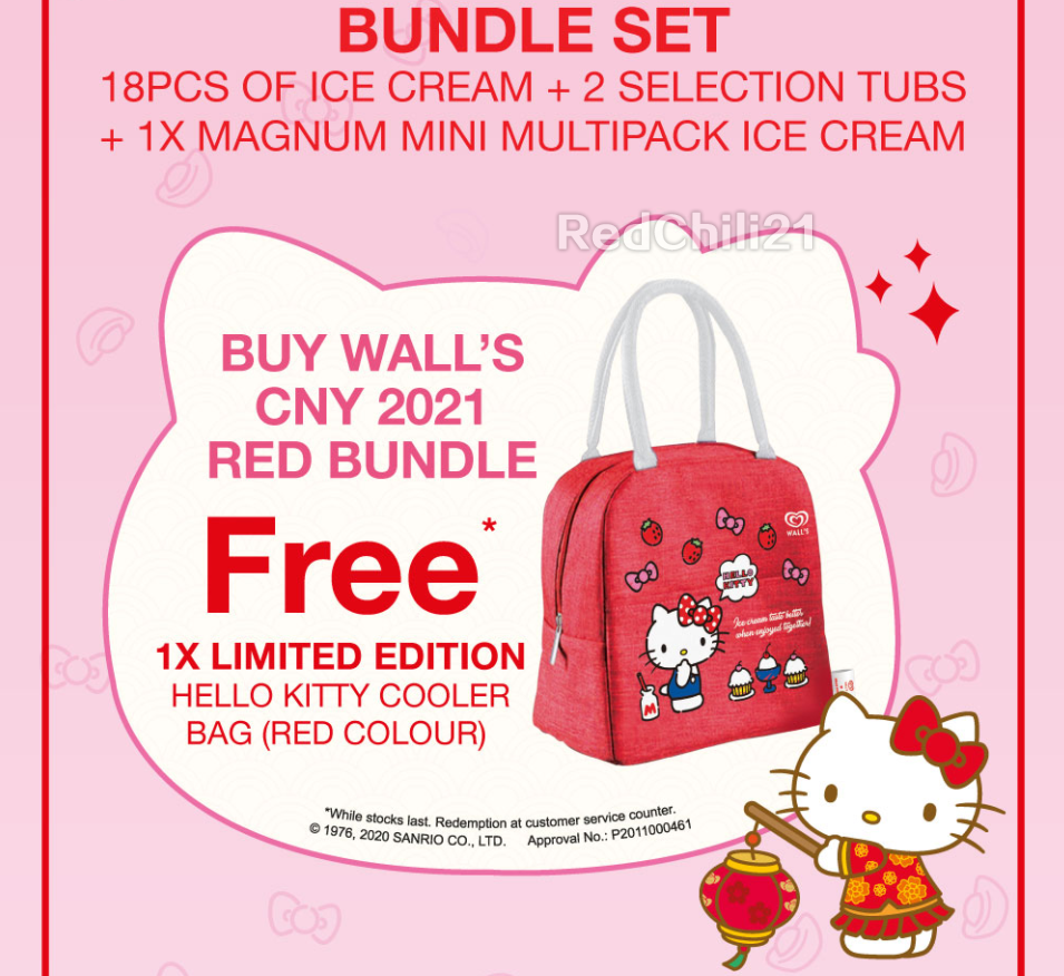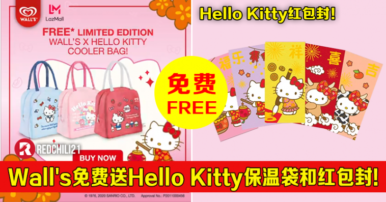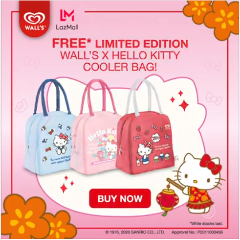 只要你在Lazada Wall’s Ice Cream 官网购买指定雪糕配套,就可免费送出Hello Kitty 保温袋(Cooler Bag)和红包封!