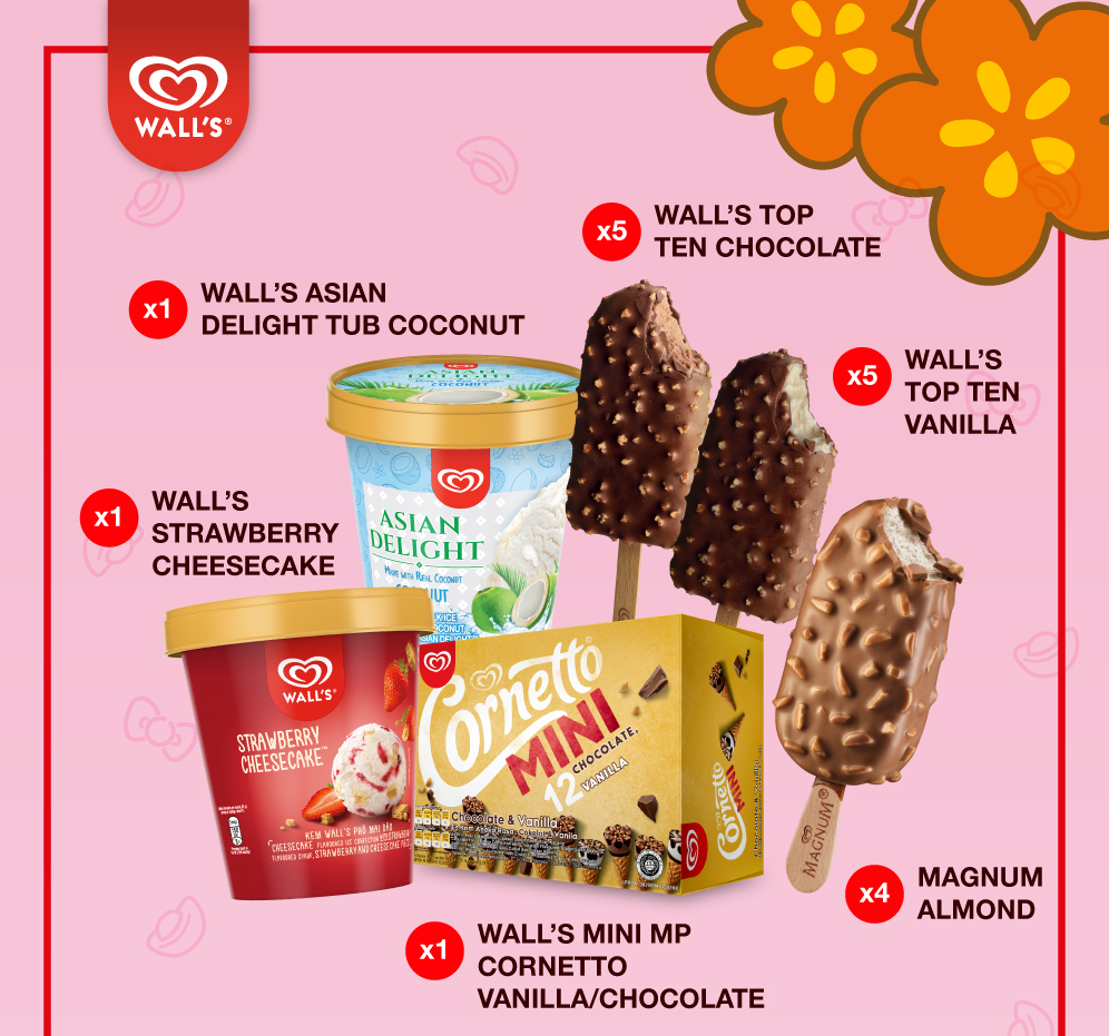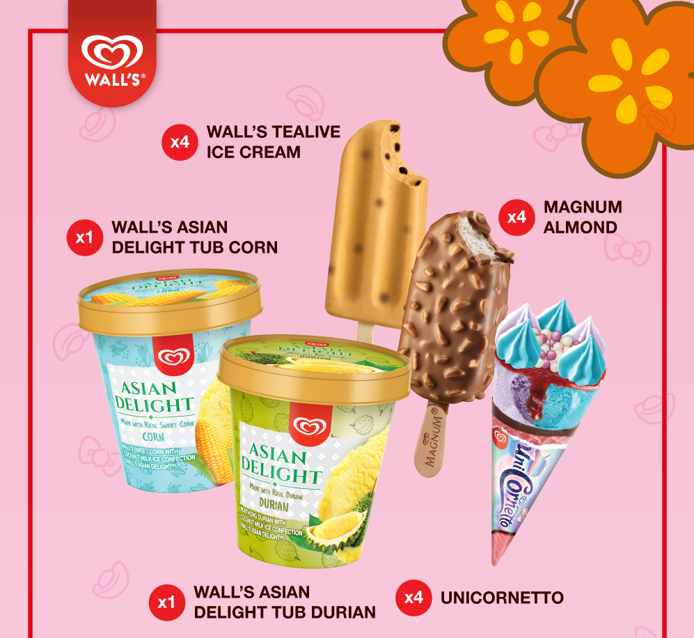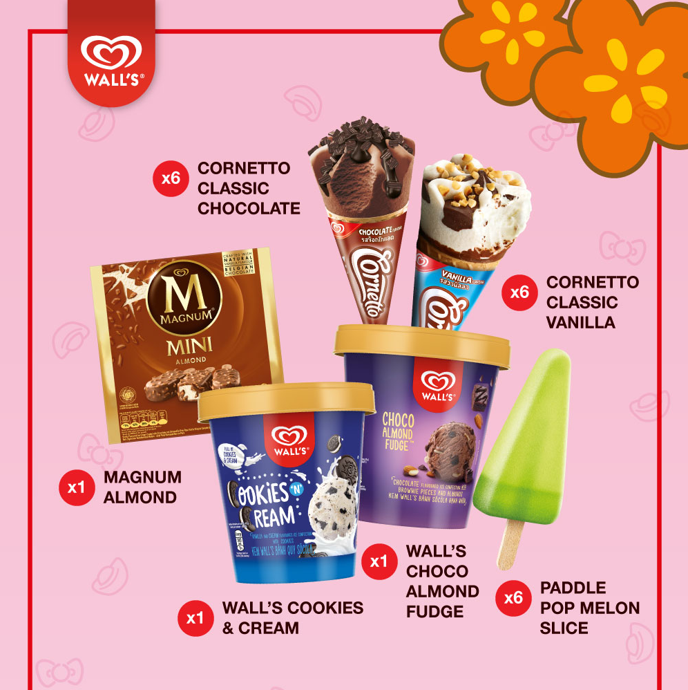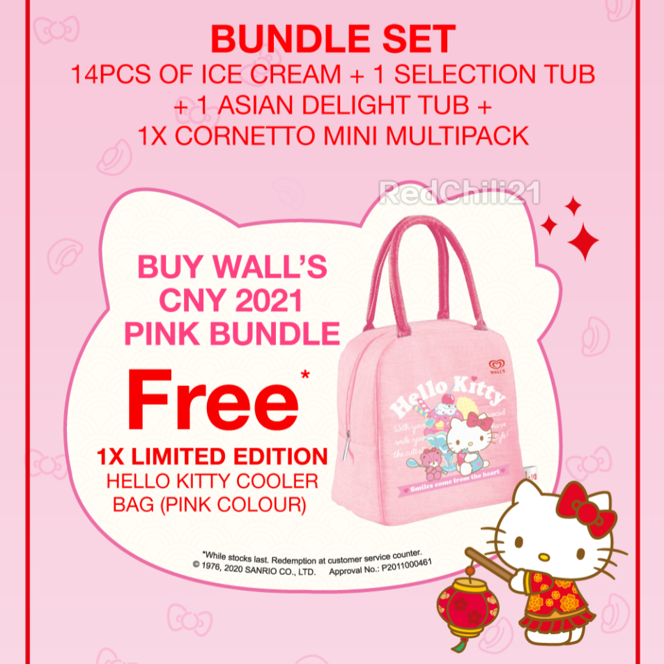 只要你在Lazada Wall’s Ice Cream 官网购买指定雪糕配套,就可免费送出Hello Kitty 保温袋(Cooler Bag)和红包封!