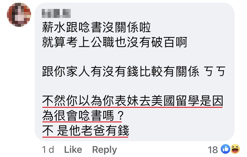 由于我高中太爱玩都在混,几乎是裸考上大学,只能读台中某夜市大学。我这种混学历毕业的人很难找到好工作,目前月薪只有3万初(约 RM4,340)。