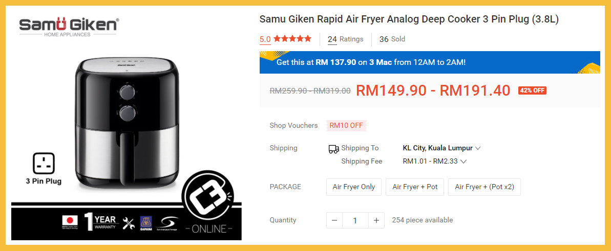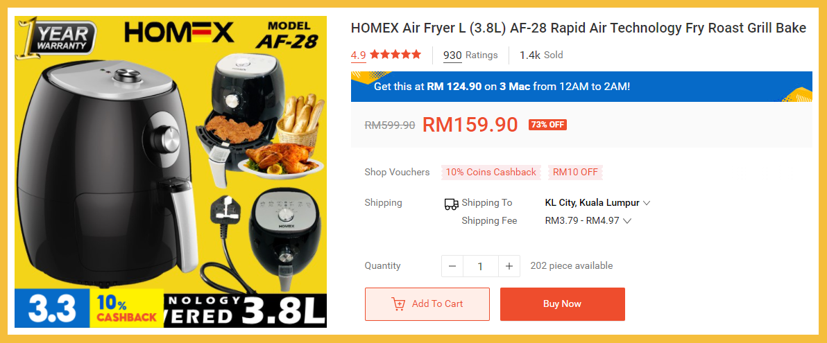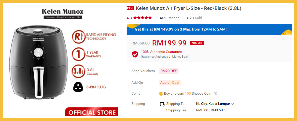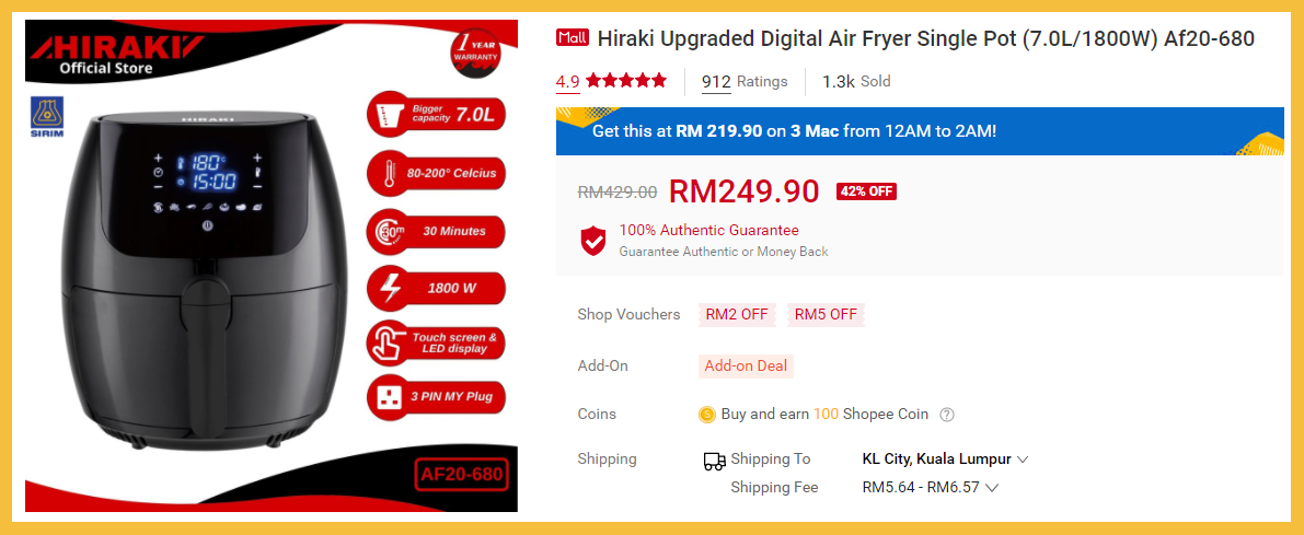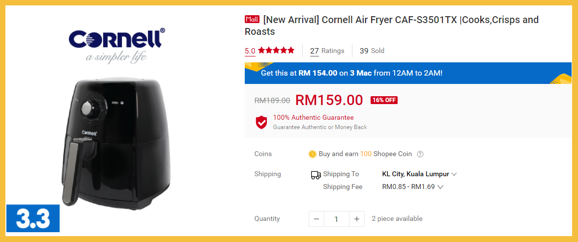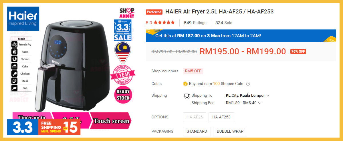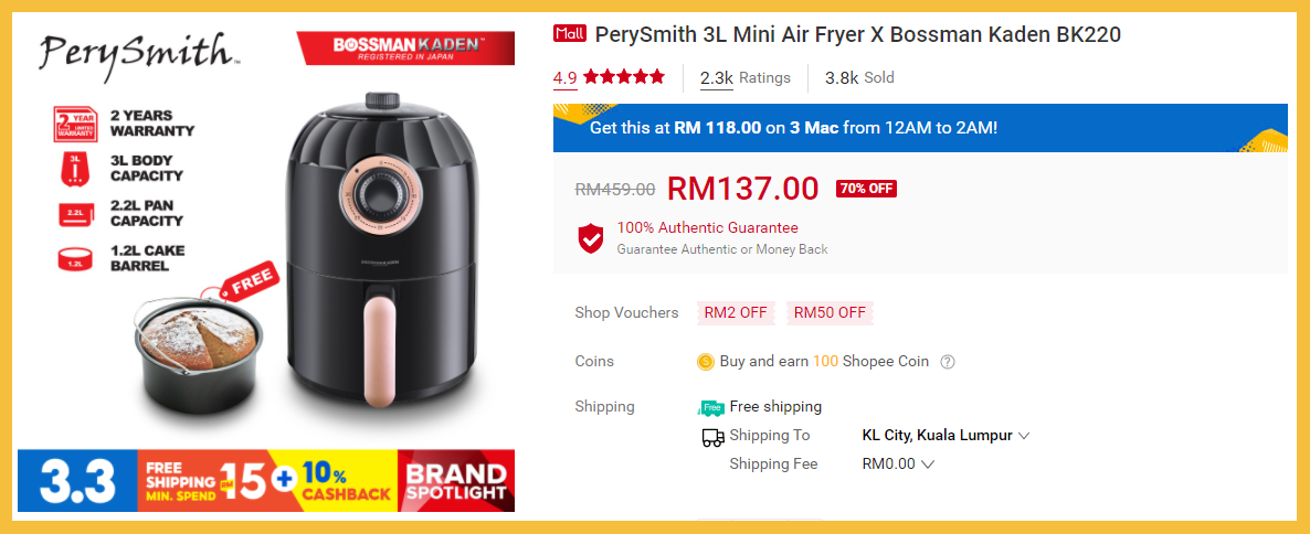Shopee 将在3月3日举办大促销!在这次优惠中,共有多种品牌的气炸锅推出大折扣!最低只需RM118!