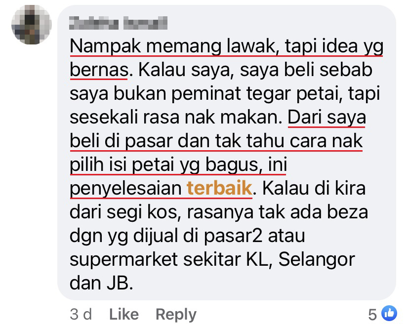 据《The Vocket》报导指出,该卖家所售卖的臭豆之所以比一般市面上的价格贵,是因为这些臭豆是来自金马仑高原,而且它的优良品质一直以来都受到许多好评和称赞。
