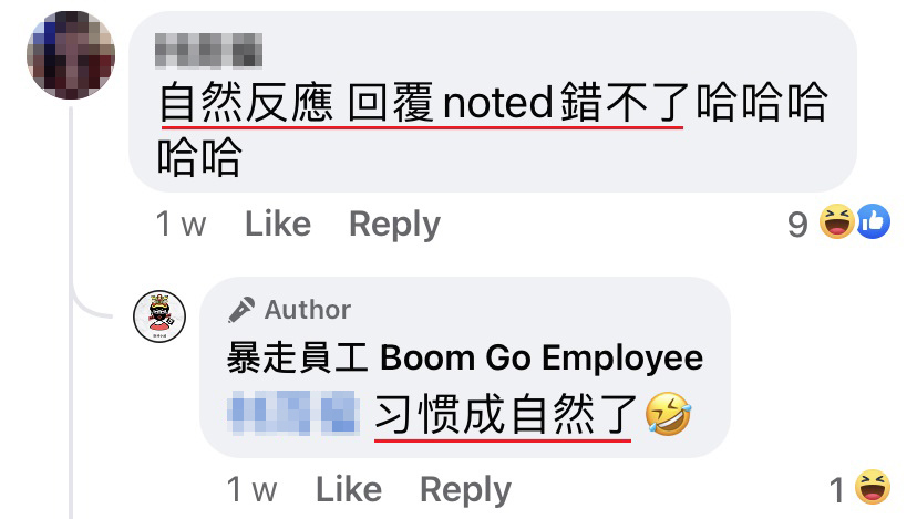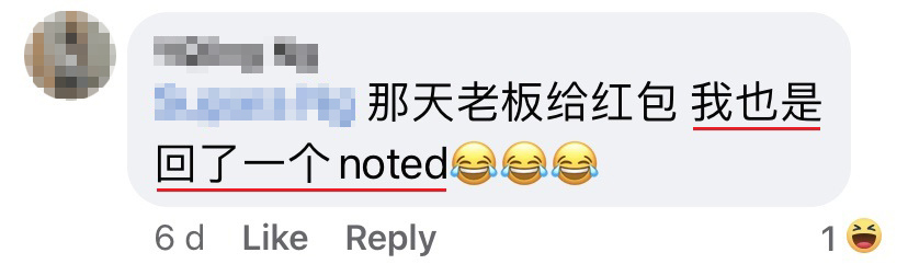 ▼ 大概是习惯了吧!看到老板的信息就秒回“Noted. ”!