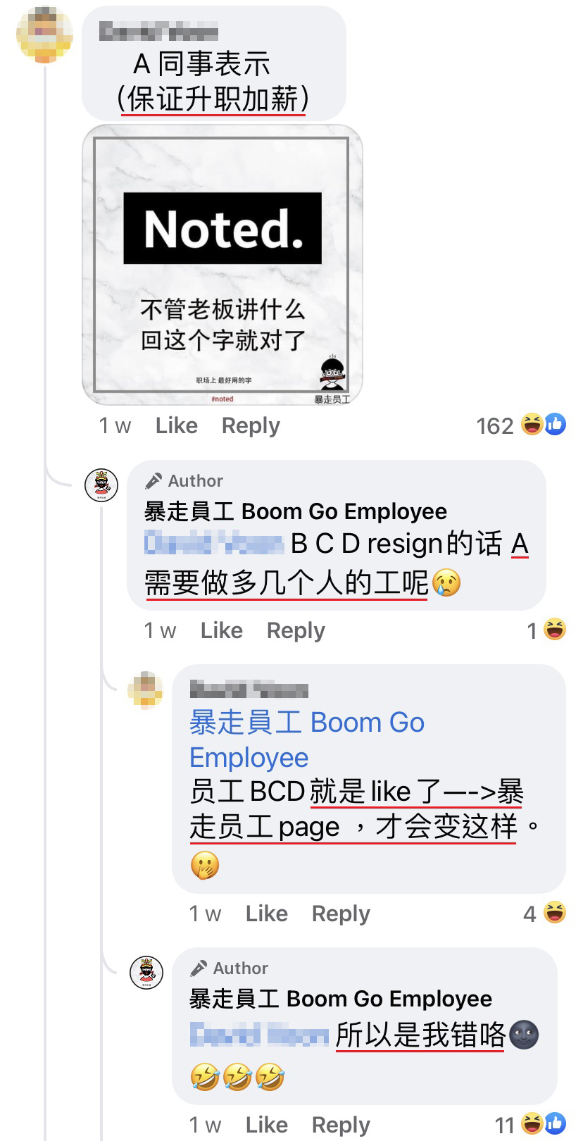看到这些“简单到不能再简单”的回复,老板忍不住问了一句:「为什么是Noted????」