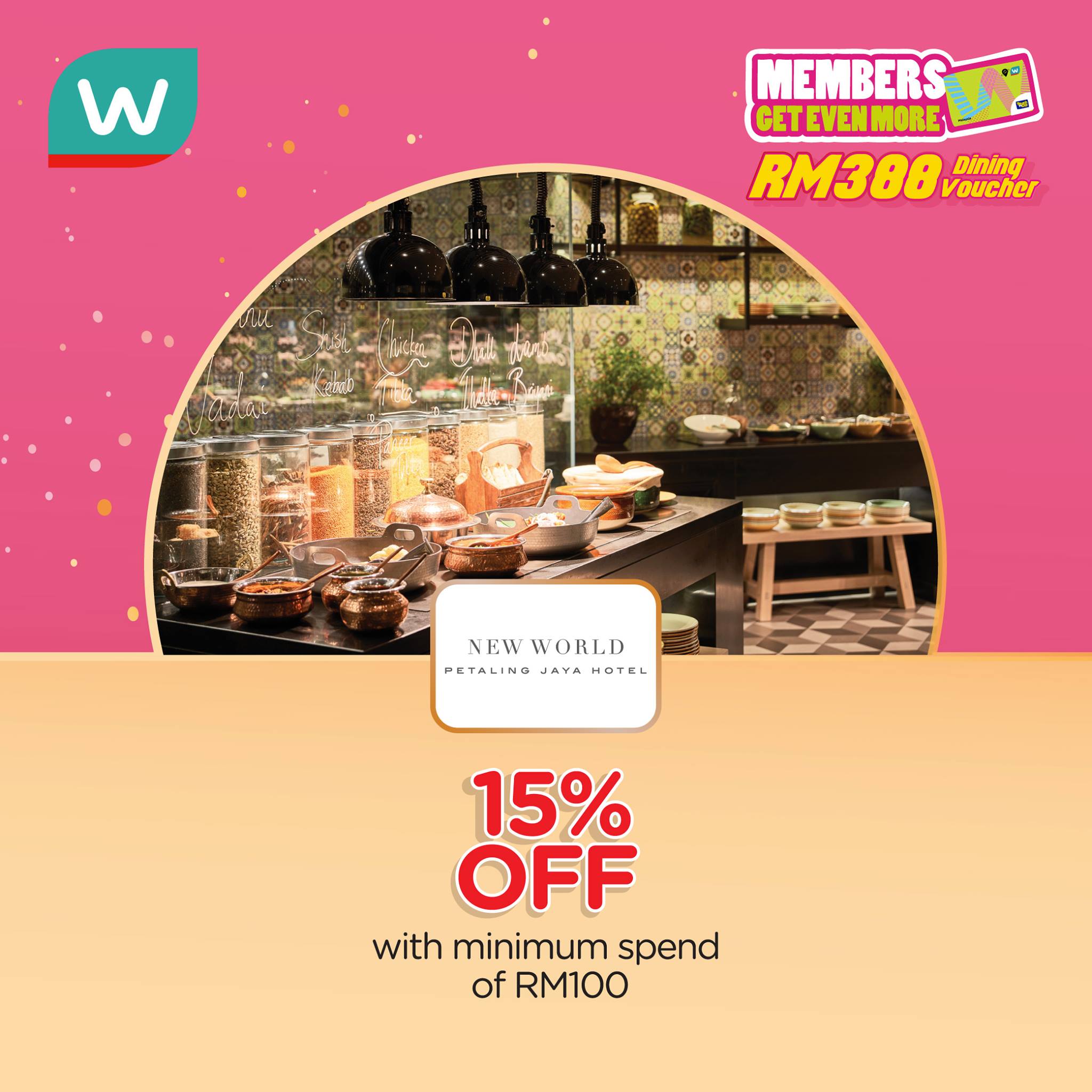 18. New World Petaling Jaya Hotel —— 消费满RM100(单张收据),可获得15%折扣