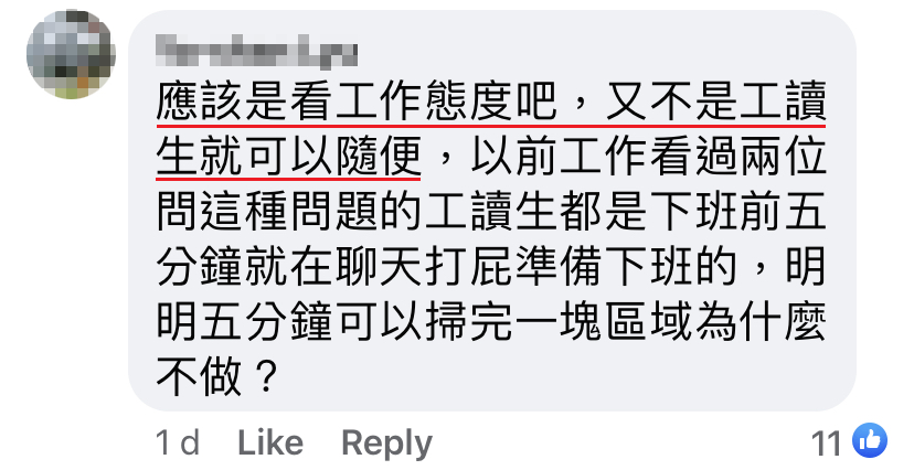 ▼ 但有的则表示,工读生只不过是领时薪的员工,时间到自然就可以走!