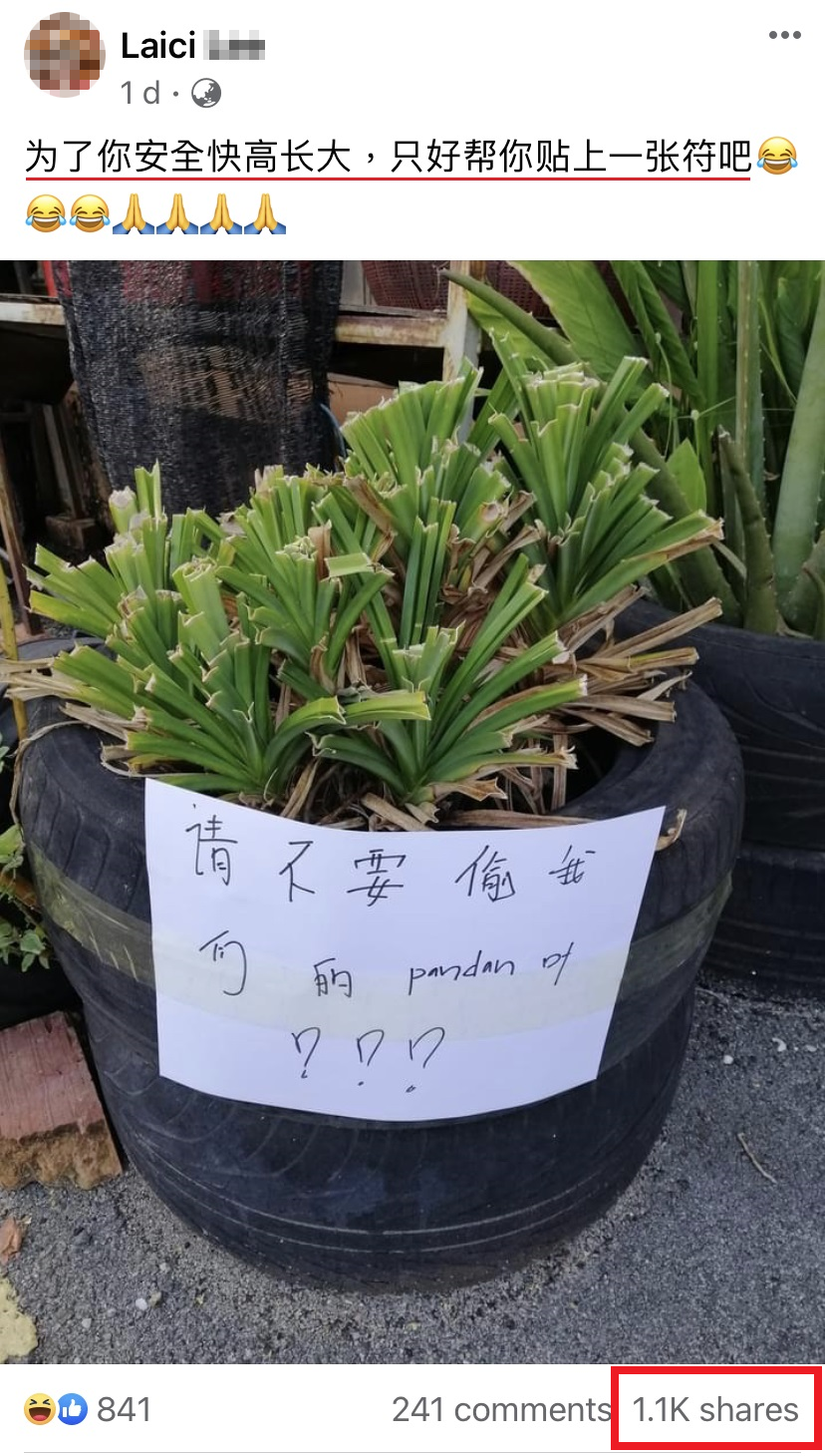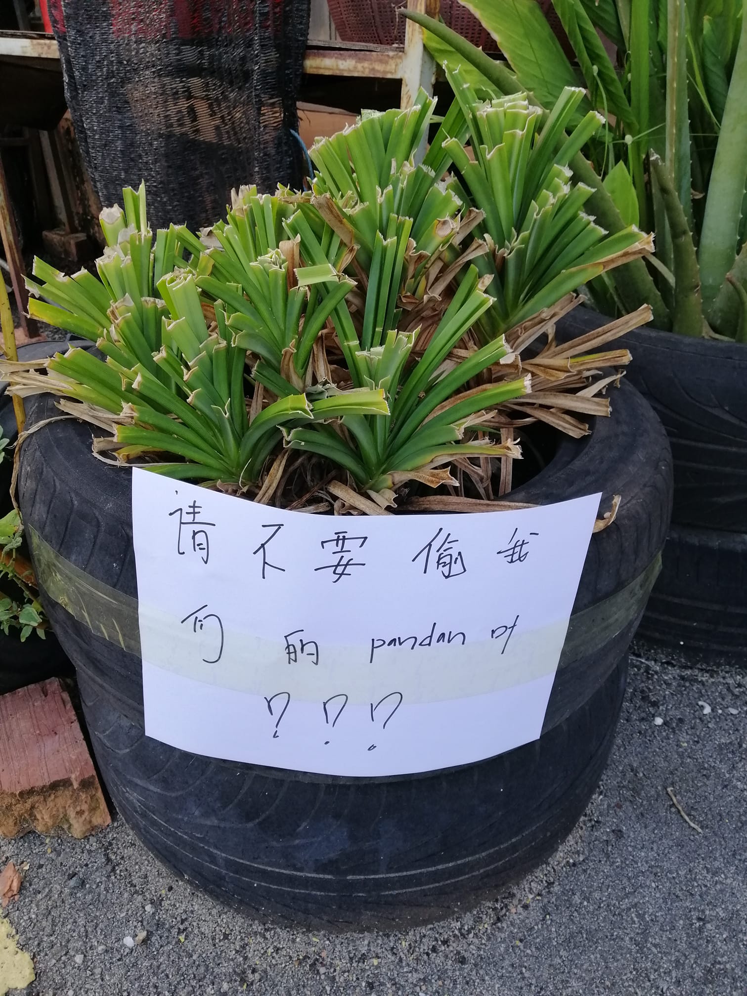 家里种的Pandan被偷到「一片平头」!大马主人写纸条警告邻居!