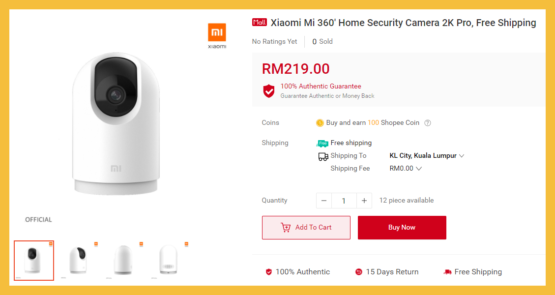 如今这款小米摄像机正式在大马网购平台Shopee 和Lazada 的Xiaomi 官网开售!小编会在下方附上链接给你们哦!