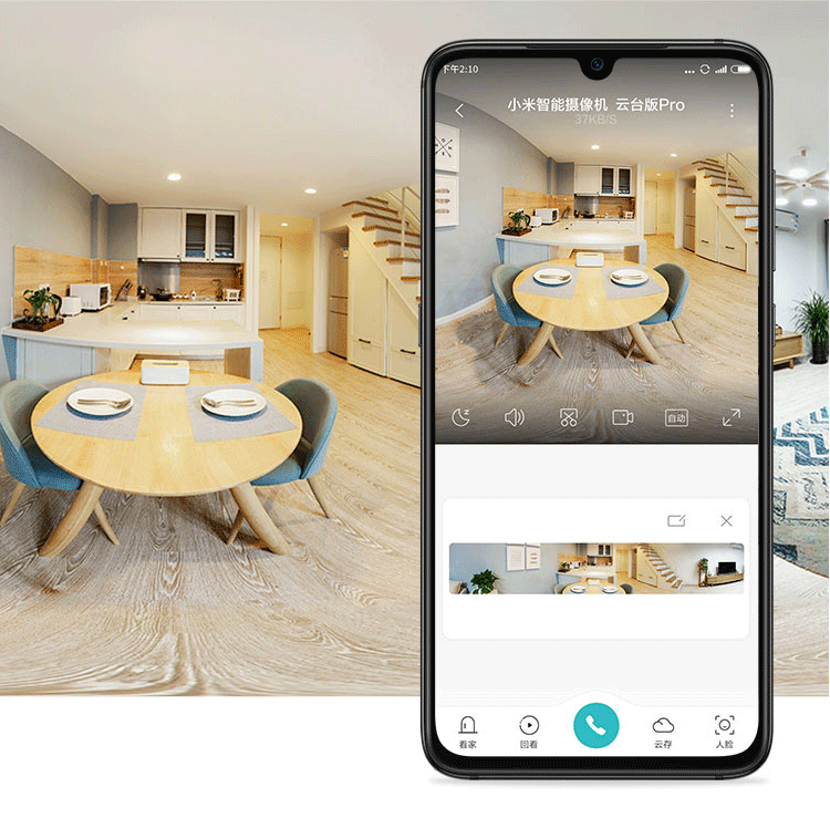 「小米智能摄像机云台版Pro」内置双麦克风,同时采用了主动降噪技术,有效消除喇叭回声,提升了通话体验。