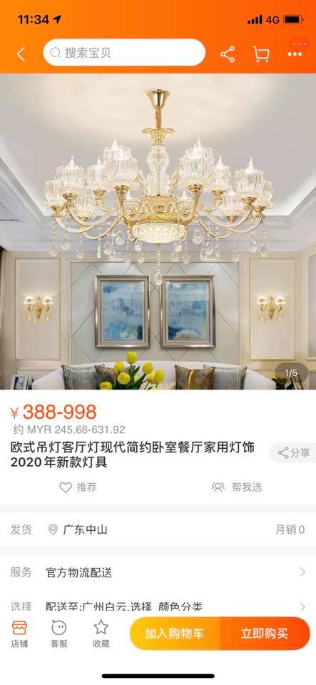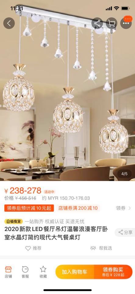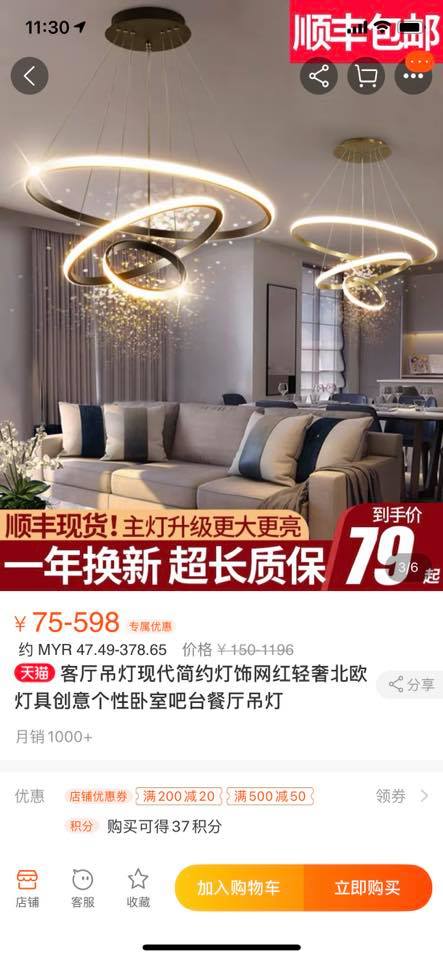 ▼ 淘宝 – 客厅吊灯(约 RM47-RM376)