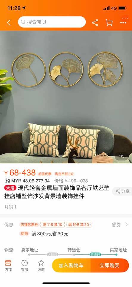 ▼ 淘宝 – 墙上壁挂饰(约 RM23-RM50)