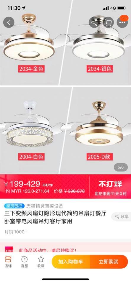 ▼ 淘宝 – 变频风扇灯(约 RM125-RM269)