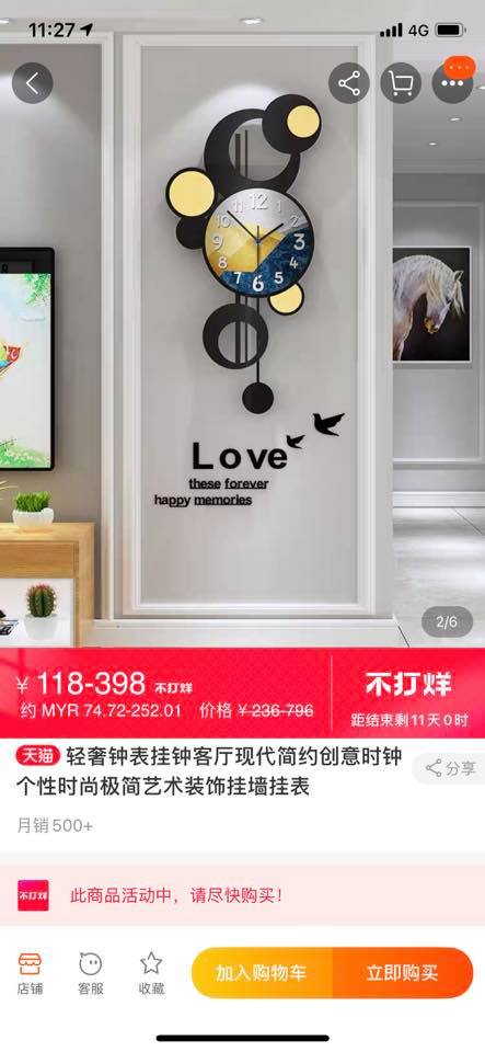 ▼ 淘宝 – 挂钟(约 RM74-RM250)