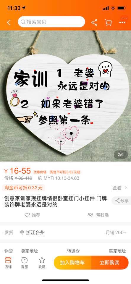 ▼ 淘宝 – 家规挂牌(约 RM10-RM34)