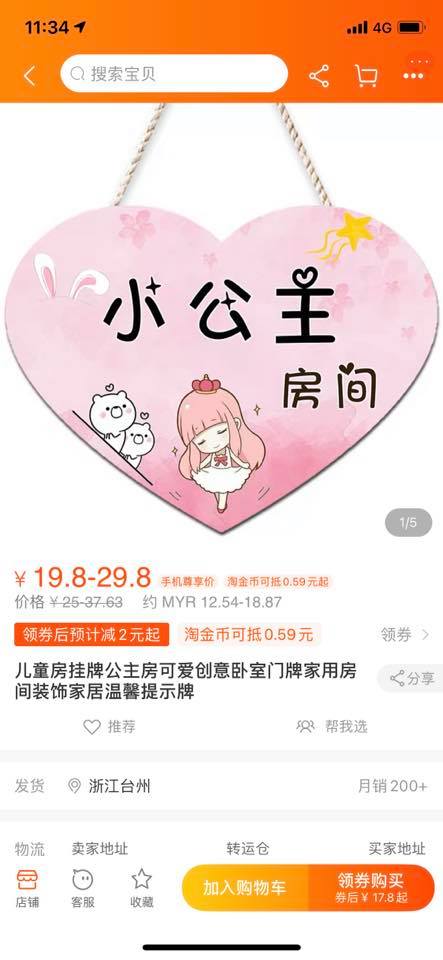 ▼ 淘宝 – 儿童房挂牌(约 RM12-RM18)