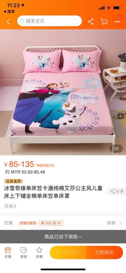 ▼ 淘宝 – 冰雪奇缘床罩(约 RM53-RM84)