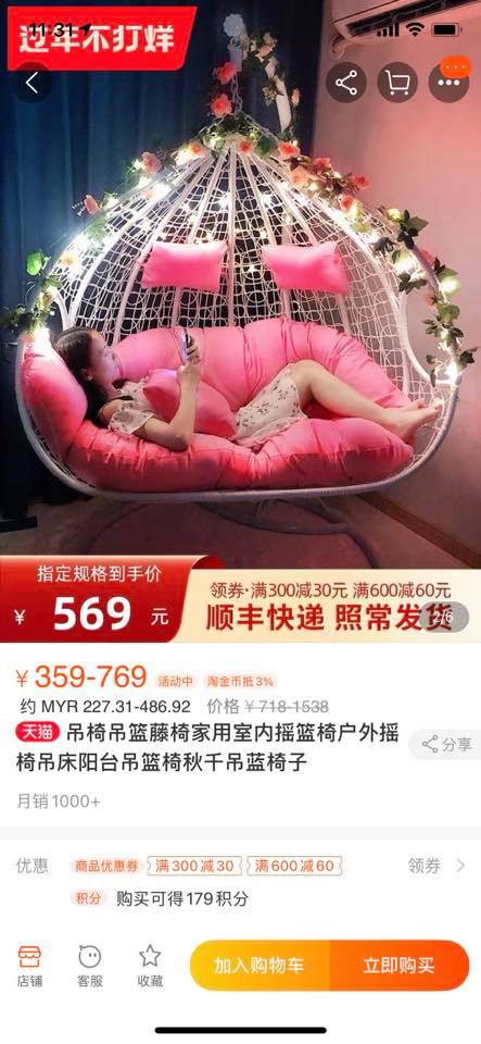 ▼ 淘宝 – 吊椅(约 RM225-RM483)